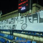 Grupul nostru a facut deplasarea cu un microbuz, drumul nefiind intrerupt de nici un incident. Nici macar de obisnuitele filtre ale jandarmeriei. Am intrat fara probleme in stadion, desi am ajuns destul de tarziu, si impreuna cu ceilalti membrii ai peluzelor Sud si Nord am incercat, si uneori am si reusit, sa cantam minute bune. Insa jocul slab al echipei si-a pus amprenta si pe aportul nostru vocal. Putine steaguri de fluturat, in mare parte datorita incertitudinilor legate de aplicarea unei legi absurde de catre organele de ordine.